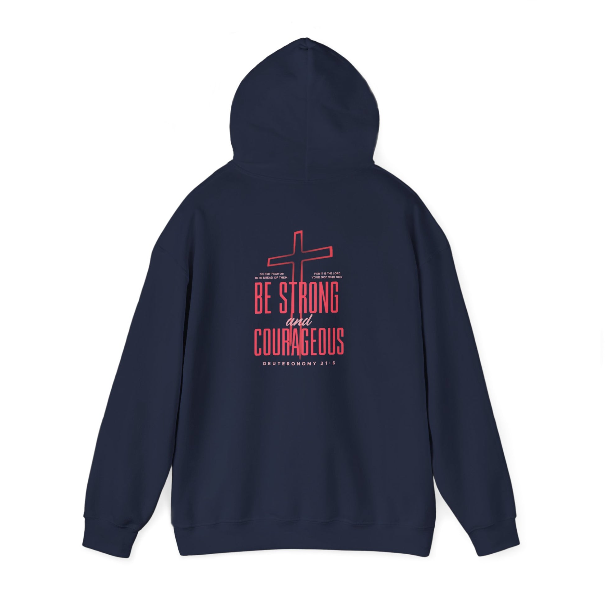 Stay warm while carrying a powerful message of faith with this Inspirational Hoodie. Featuring a bold cross design and the encouraging scripture from Deuteronomy 31:6, “Be Strong and Courageous”, this hoodie is more than just clothing, it’s a daily reminder to walk in strength and trust in God’s presence.