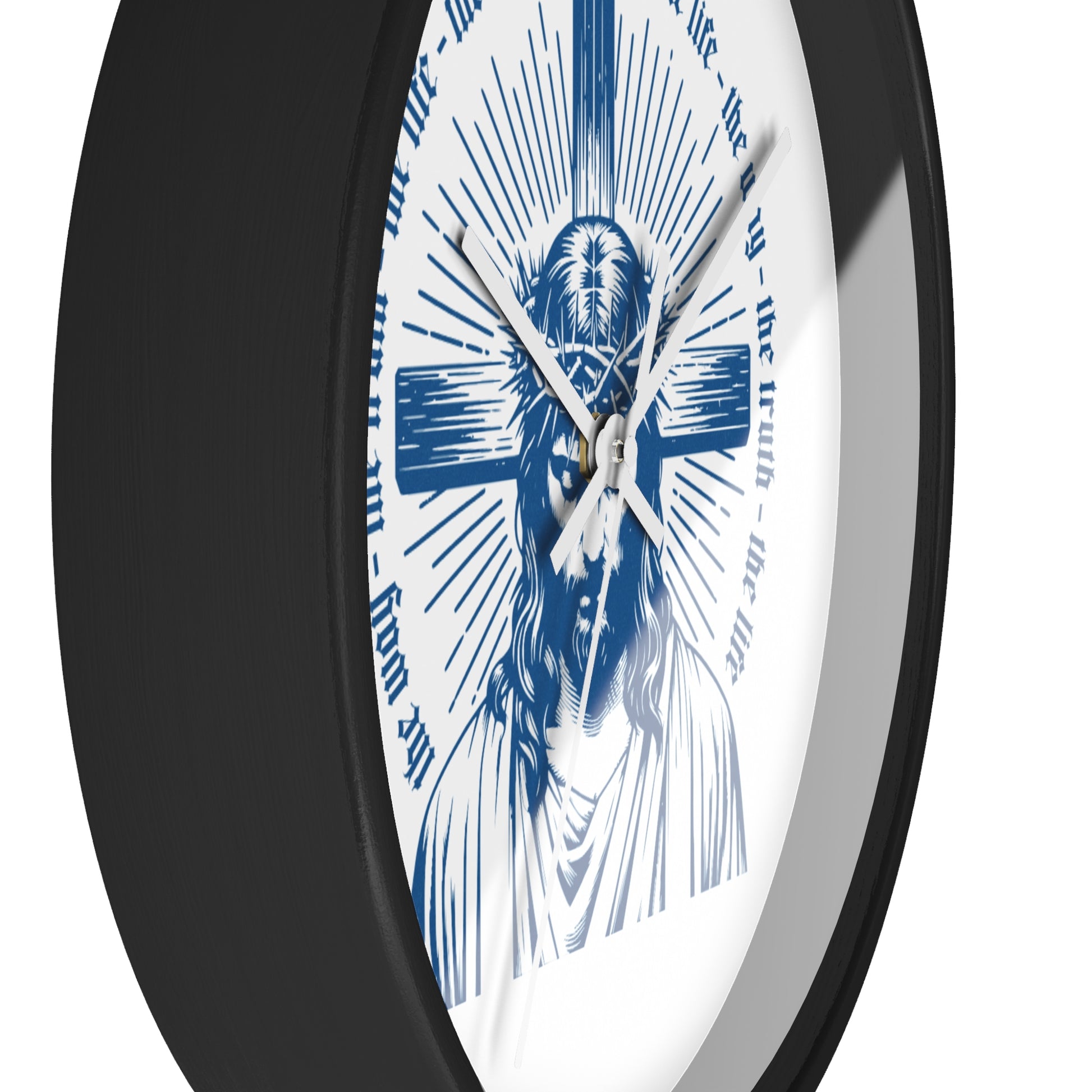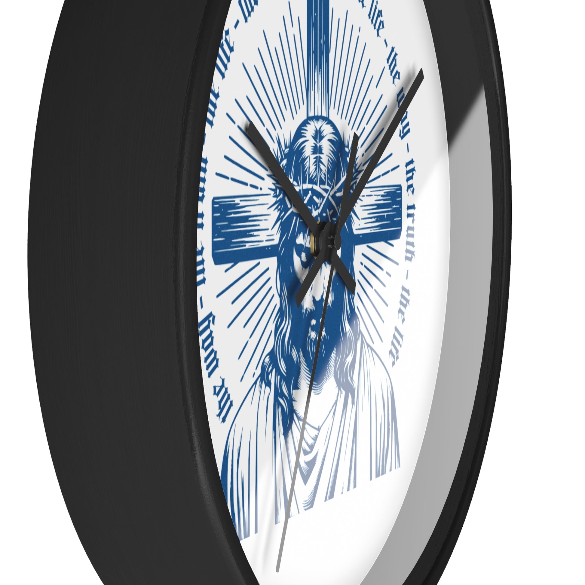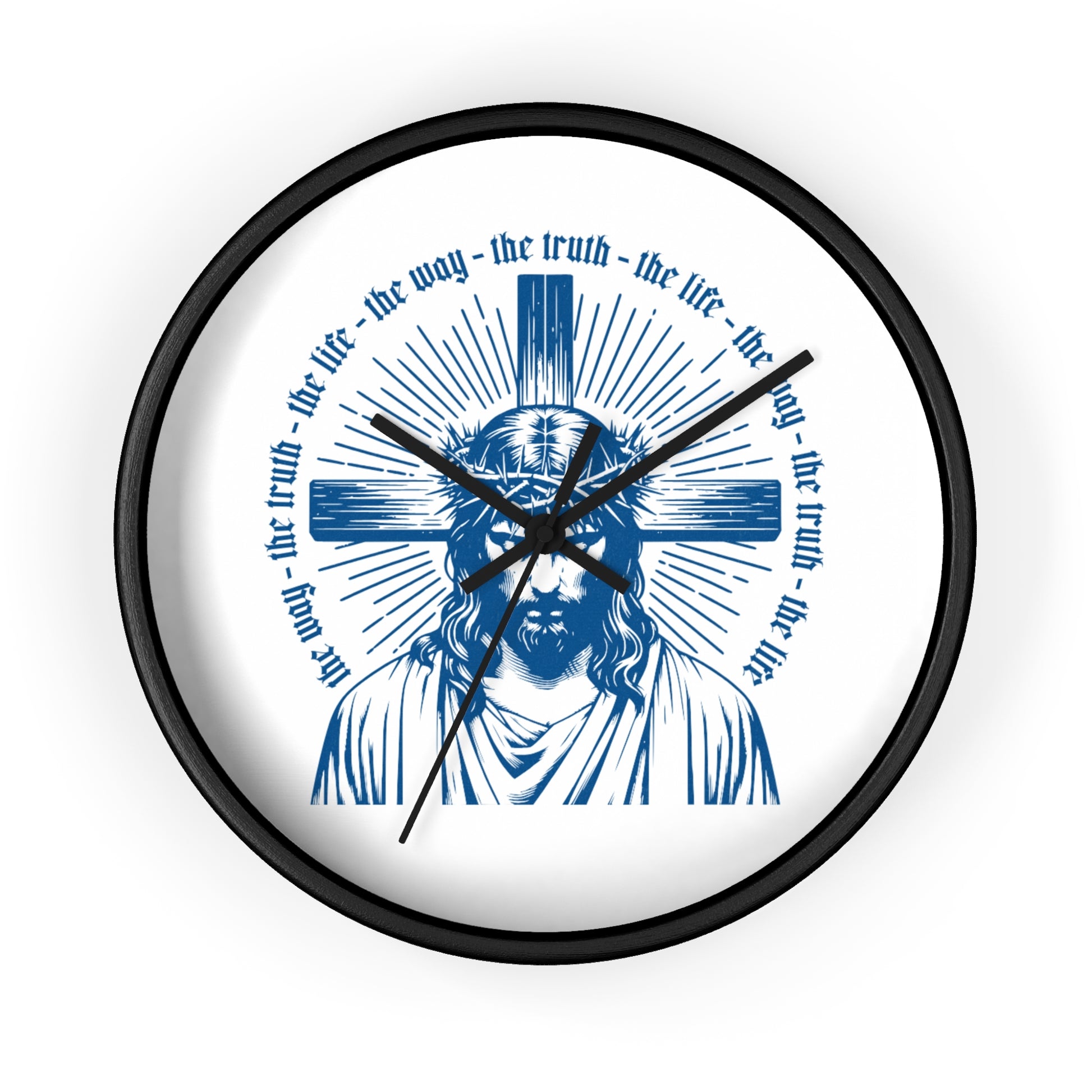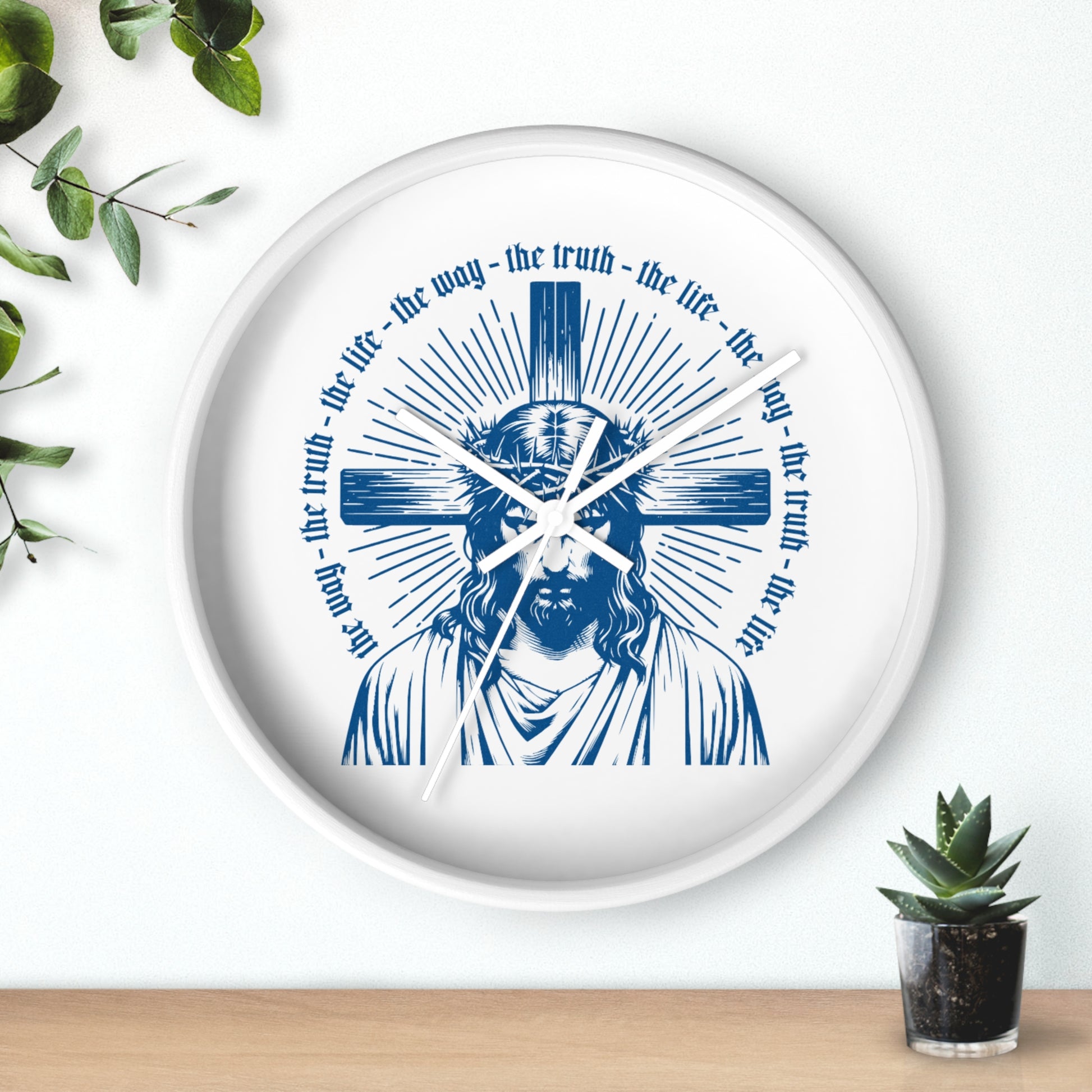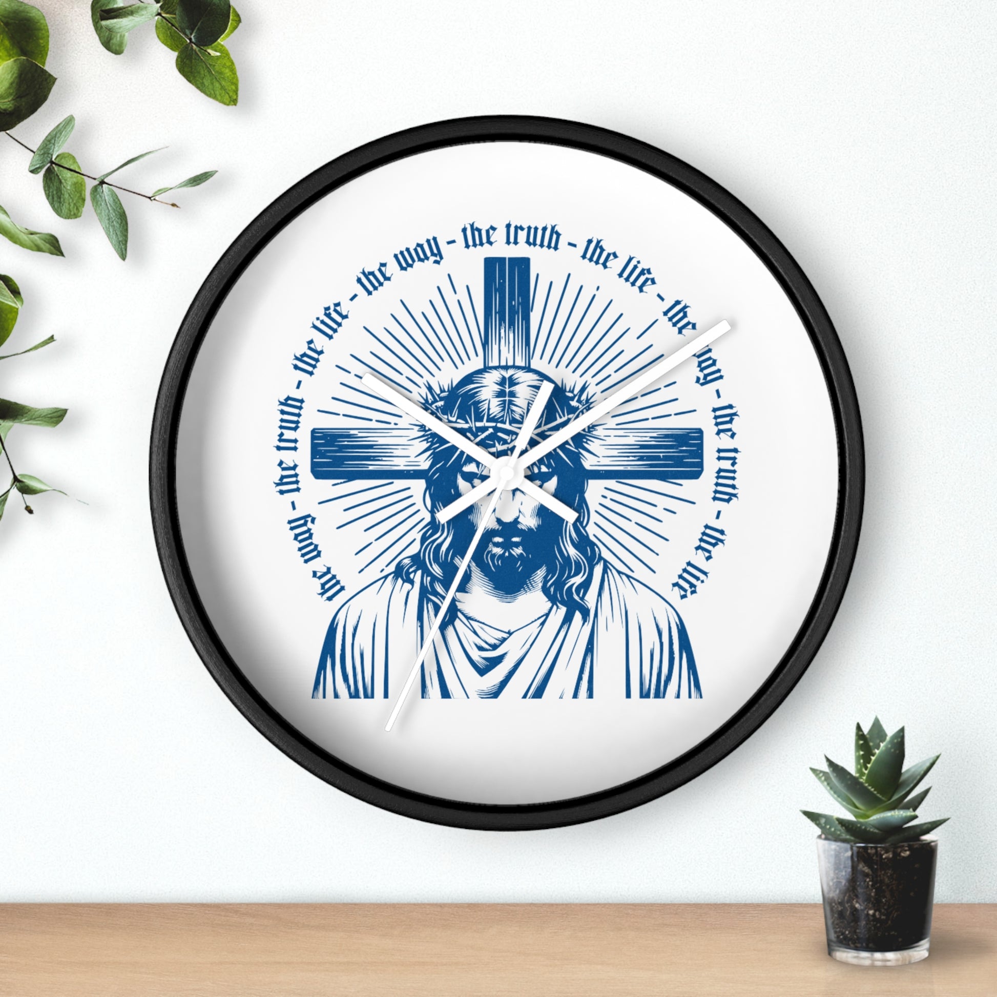 Bring timeless faith into your home with this beautifully designed Christian Wall Clock, featuring an inspiring image of Jesus Christ with a radiant cross and the powerful words: “The Way, The Truth, The Life.”