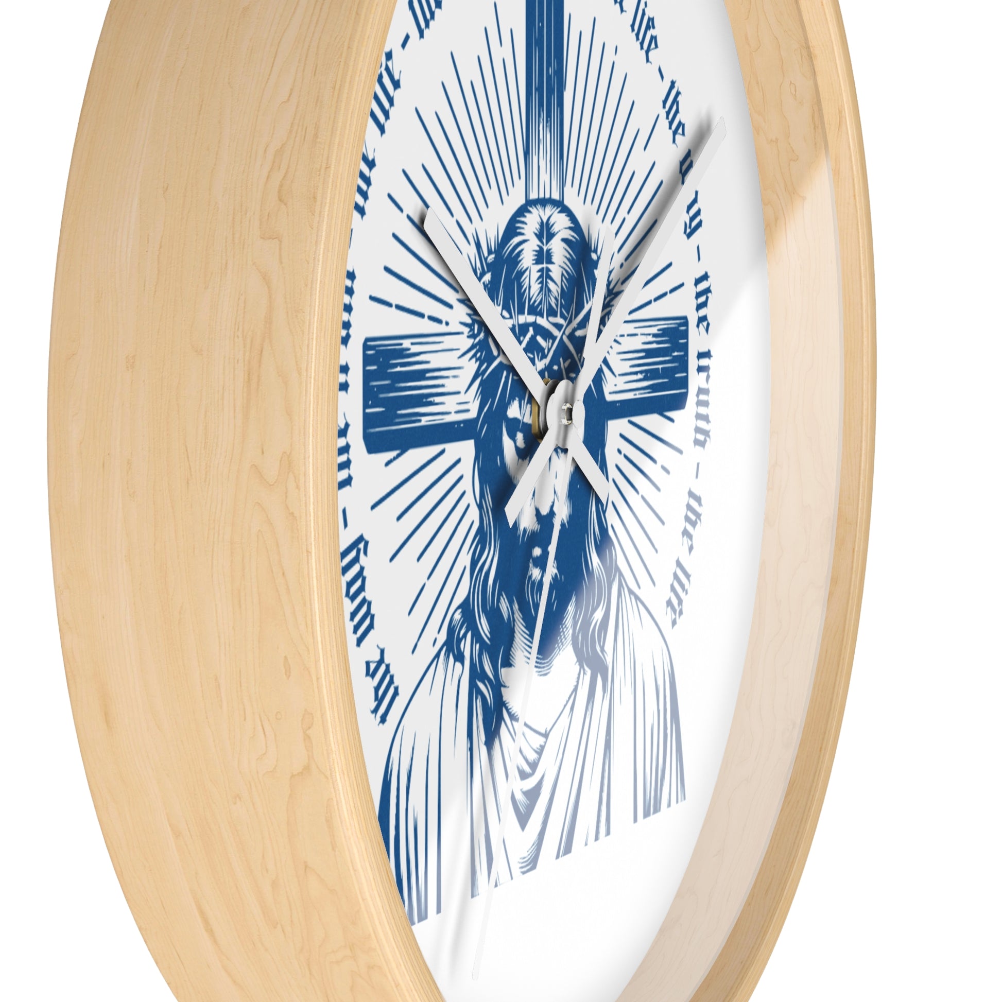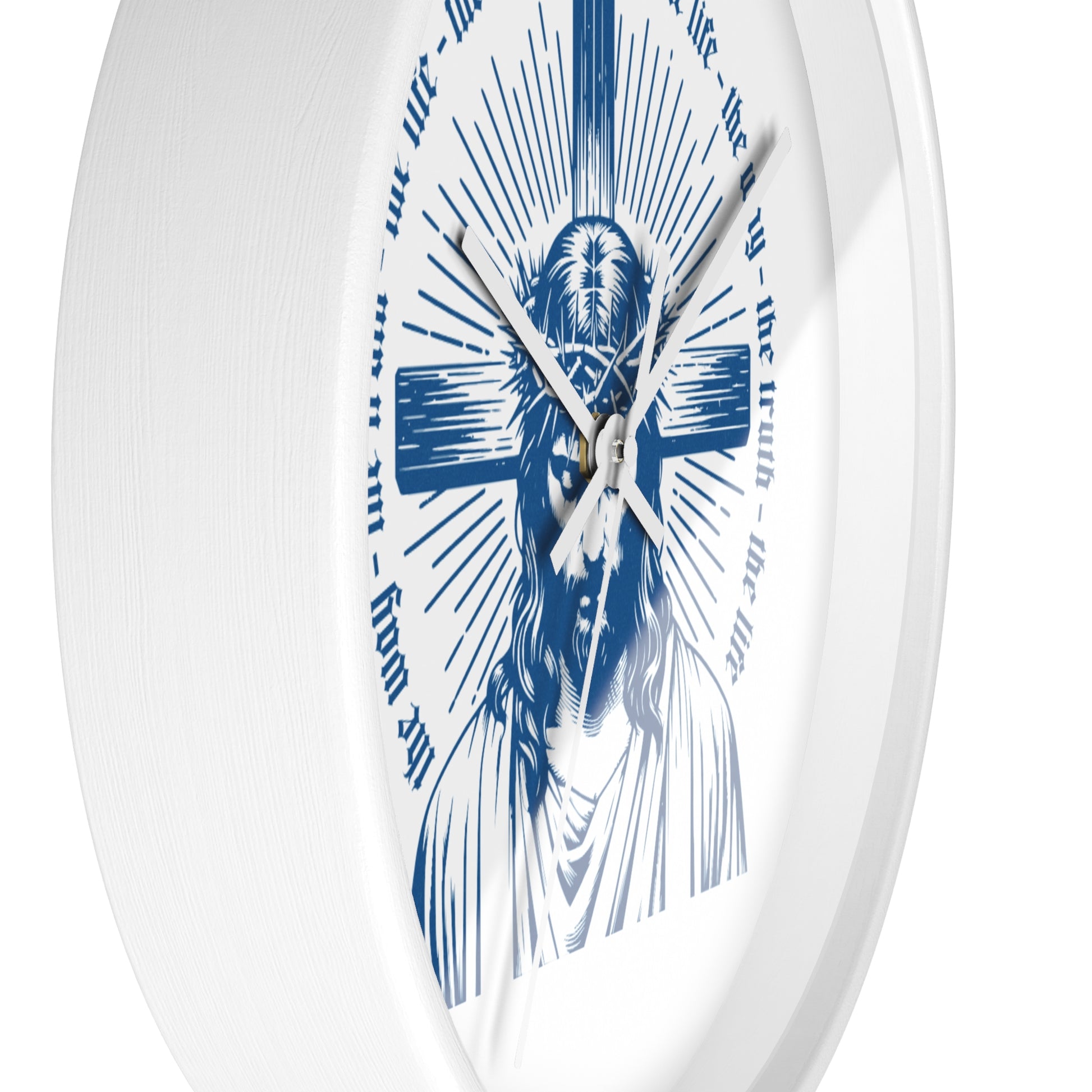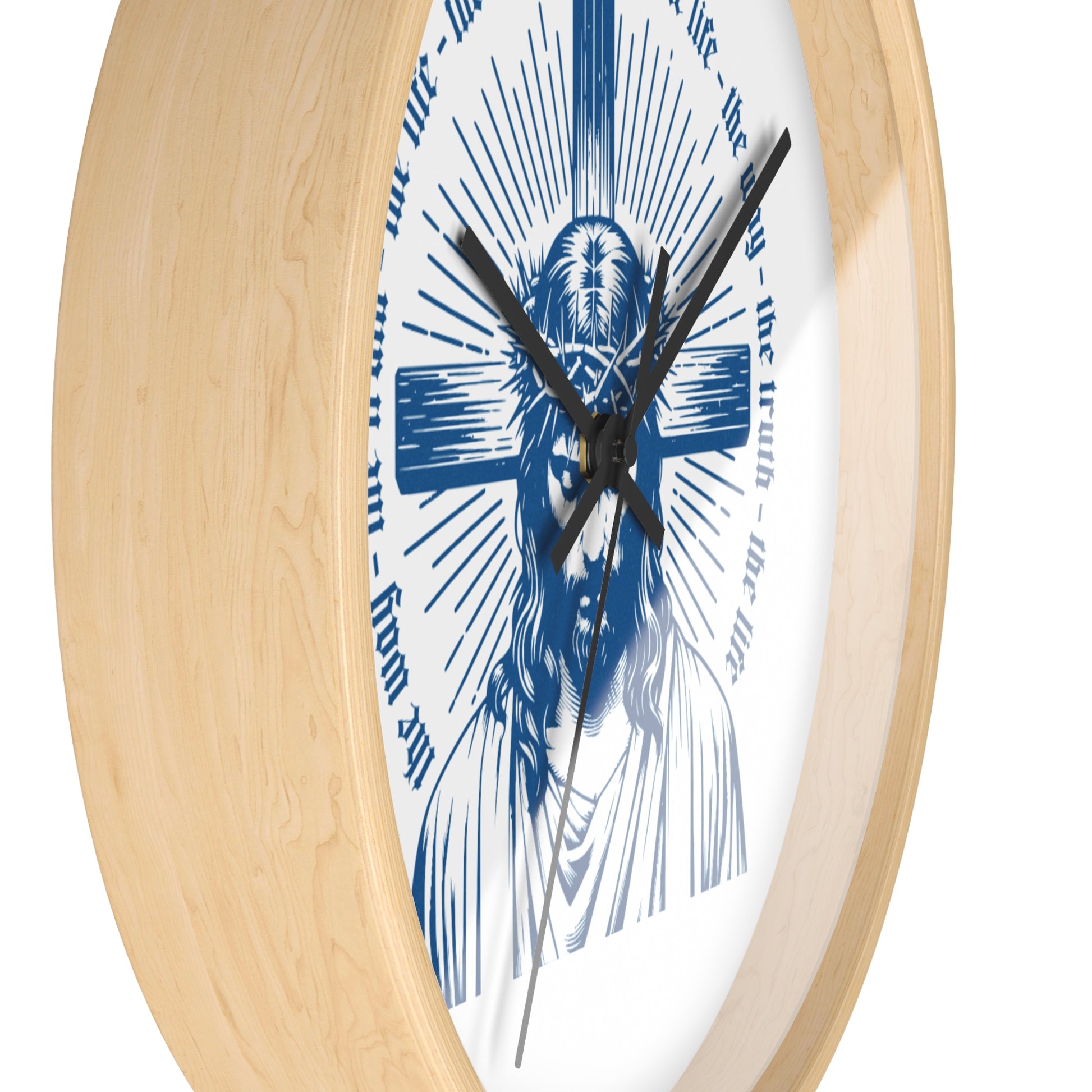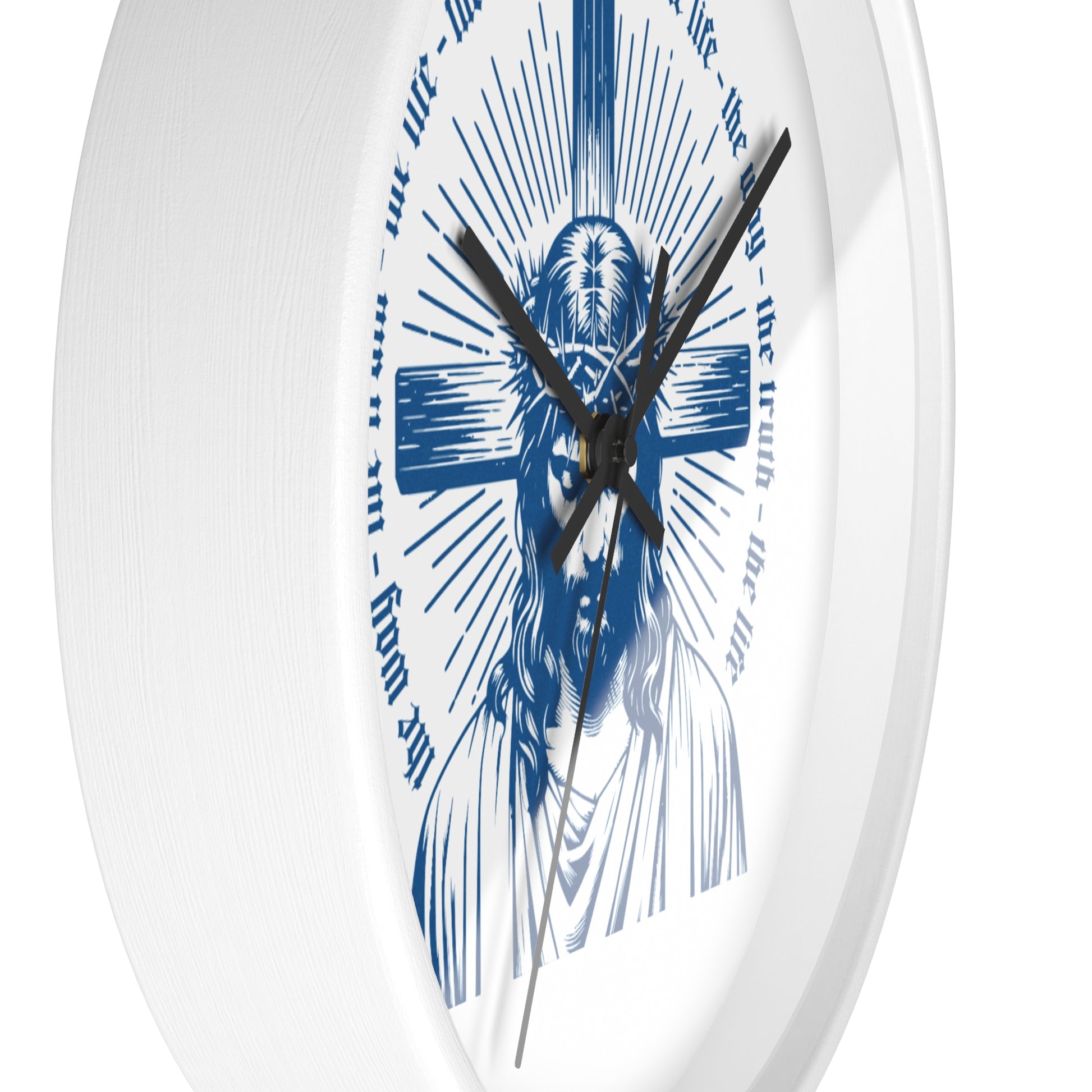 Bring timeless faith into your home with this beautifully designed Christian Wall Clock, featuring an inspiring image of Jesus Christ with a radiant cross and the powerful words: “The Way, The Truth, The Life.”