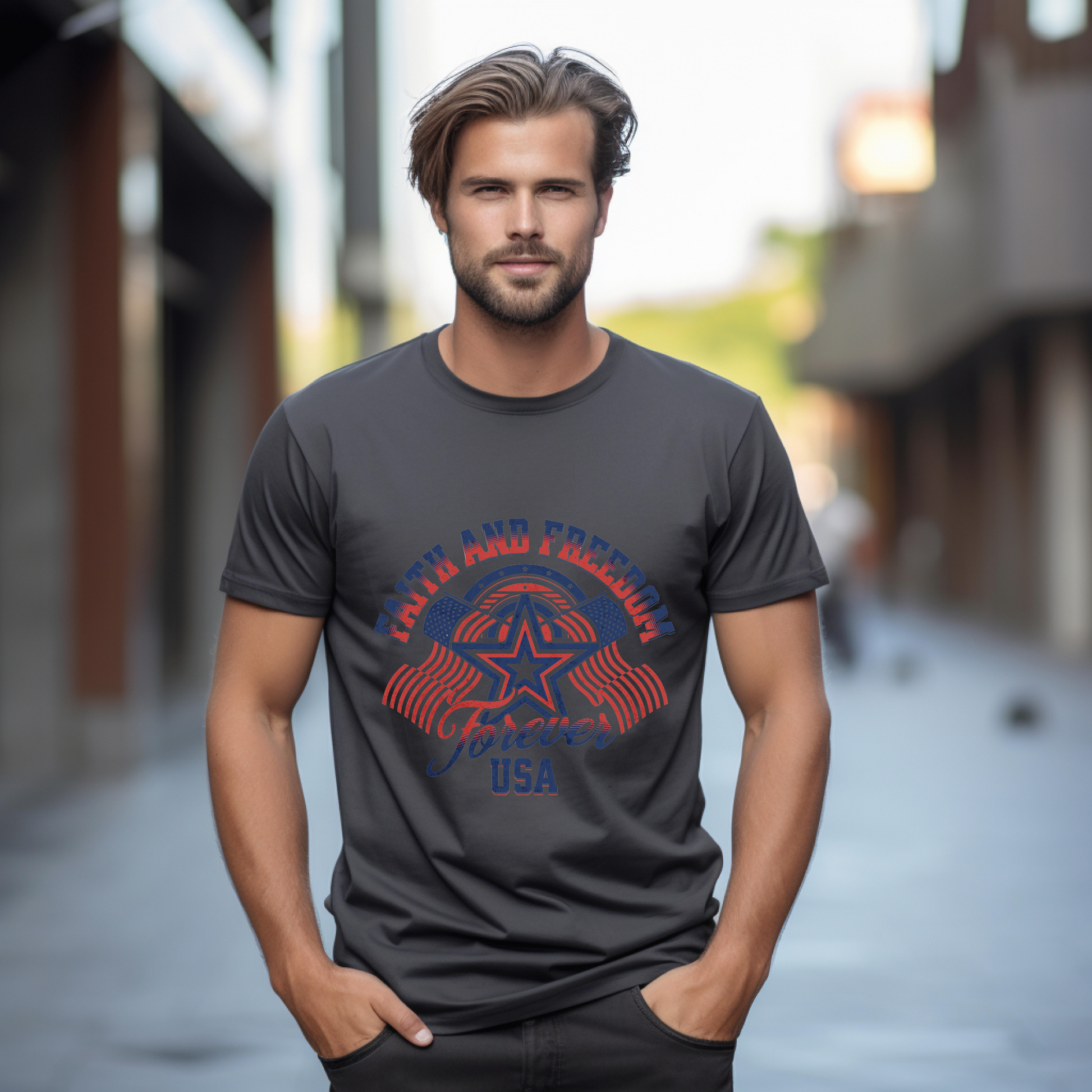 Show your pride in both faith and country with the Faith and Freedom Forever USA T-Shirt , a bold and inspiring unisex tee that perfectly blends the spirit of America with the strength of Christian faith.
