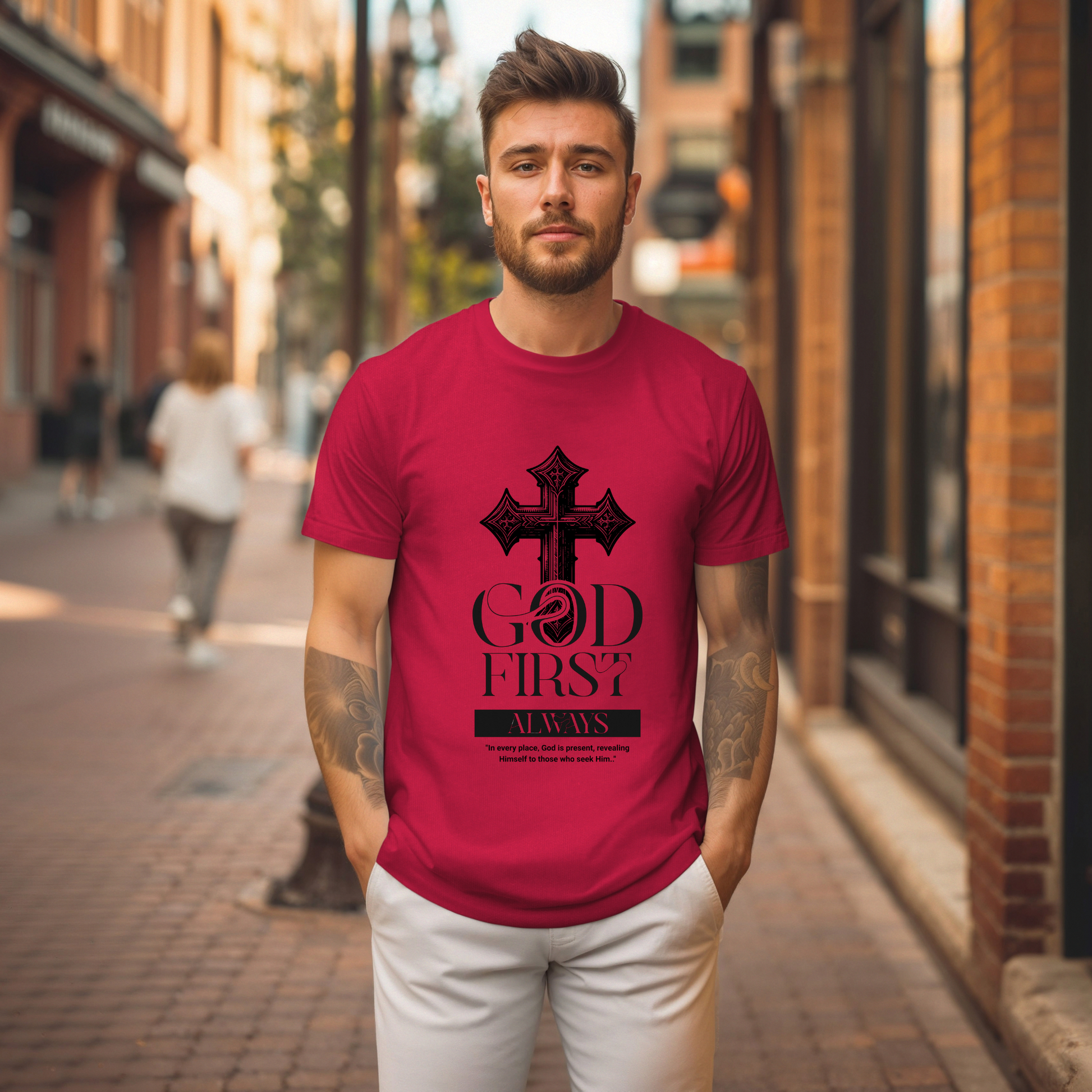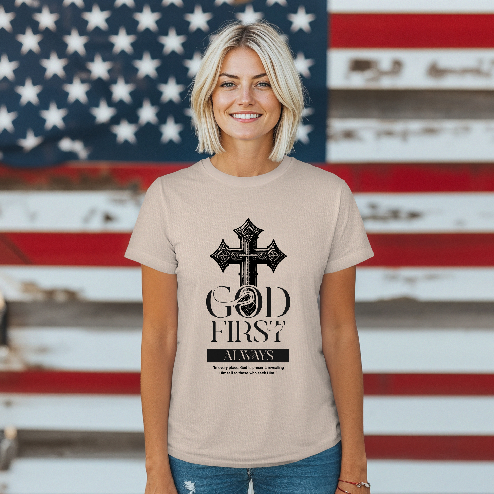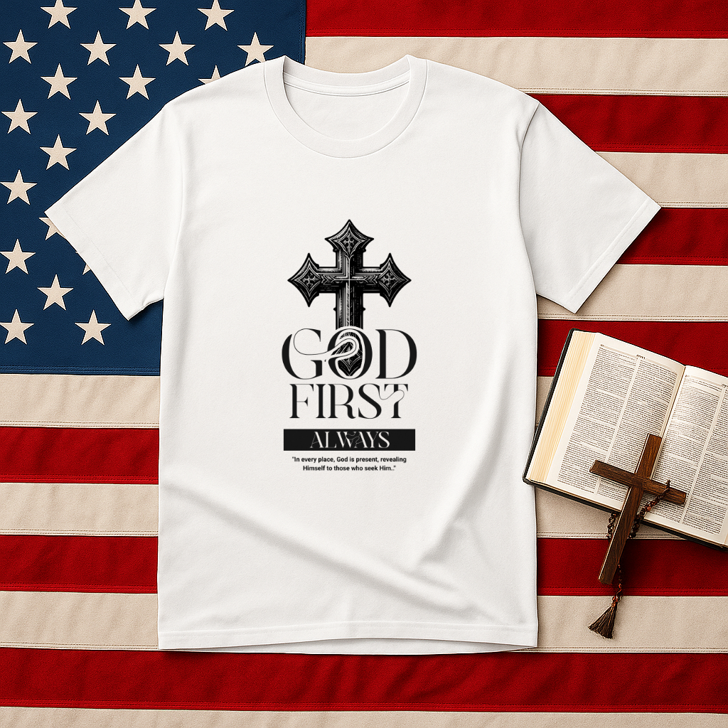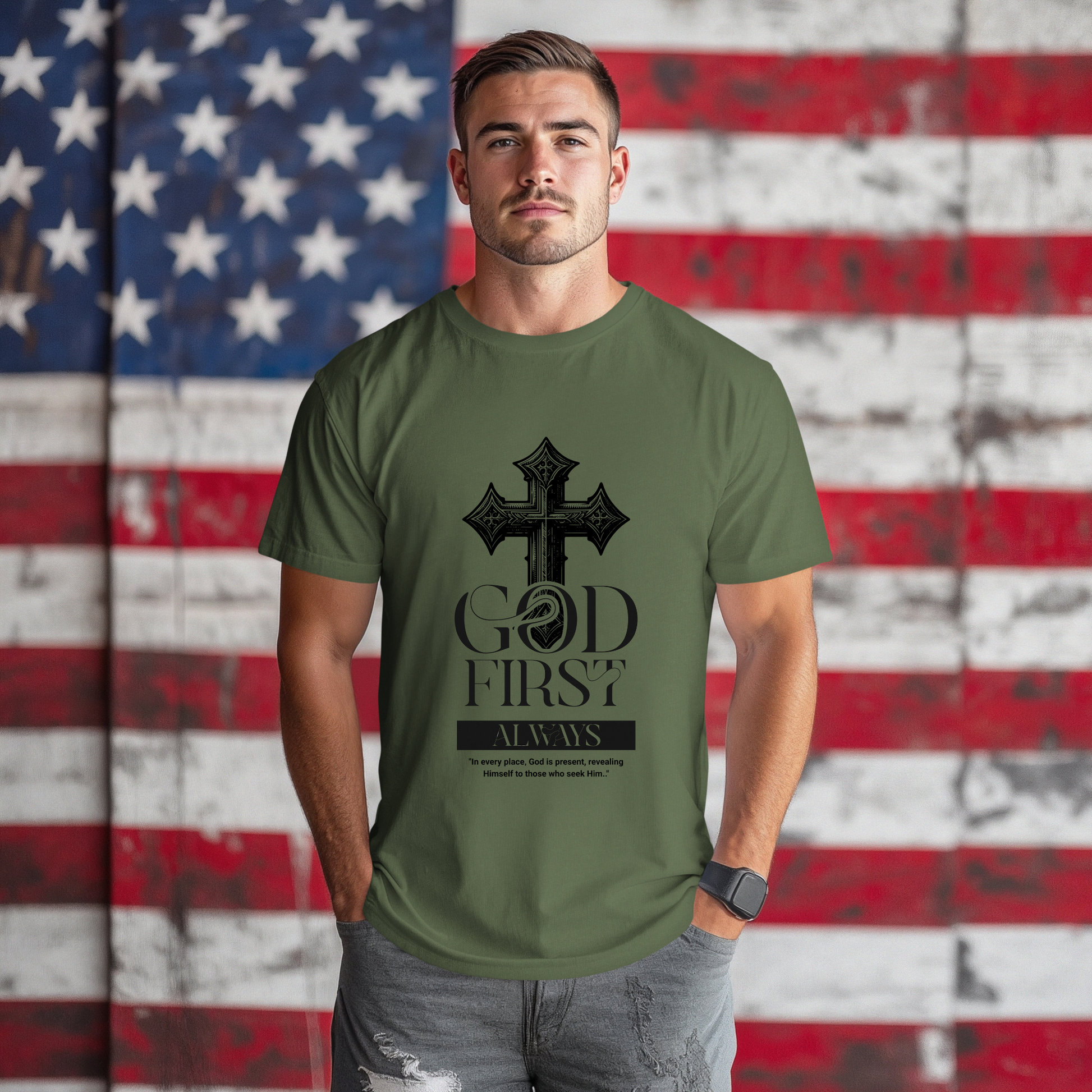 The God First Always T-Shirt is a simple yet powerful way to share your faith , reminding us that when God is first, everything else falls into place.