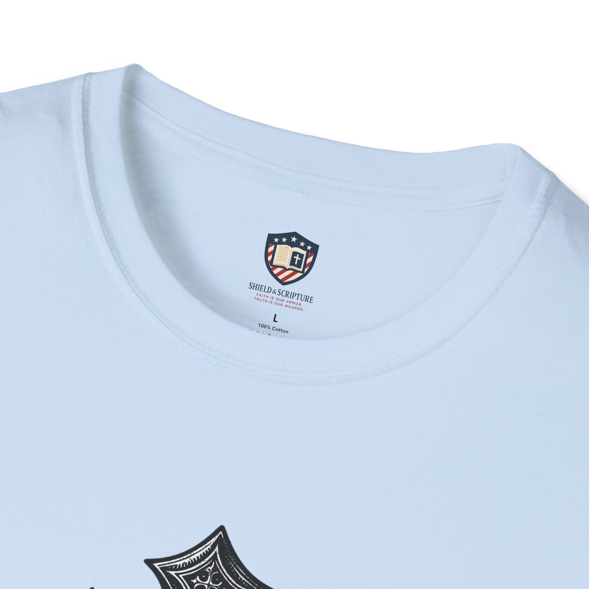 Crafted from soft, breathable cotton, this unisex tee ensures all-day comfort and durability, wash after wash. Its classic fit makes it perfect for church gatherings, Bible study, casual outings, or simply as an everyday statement of faith.