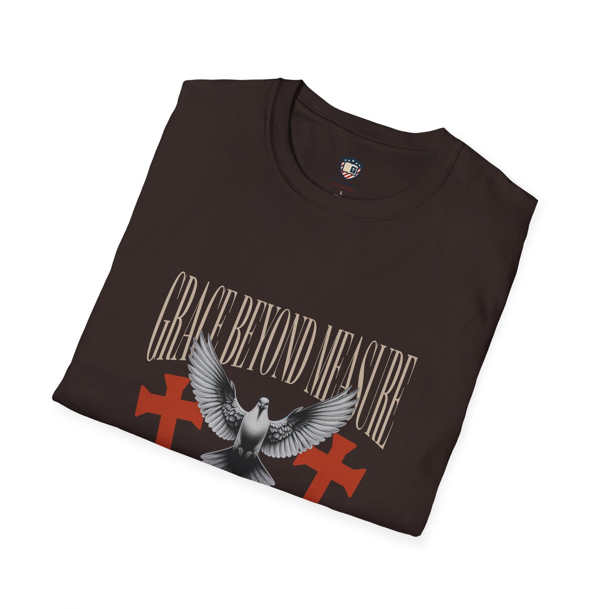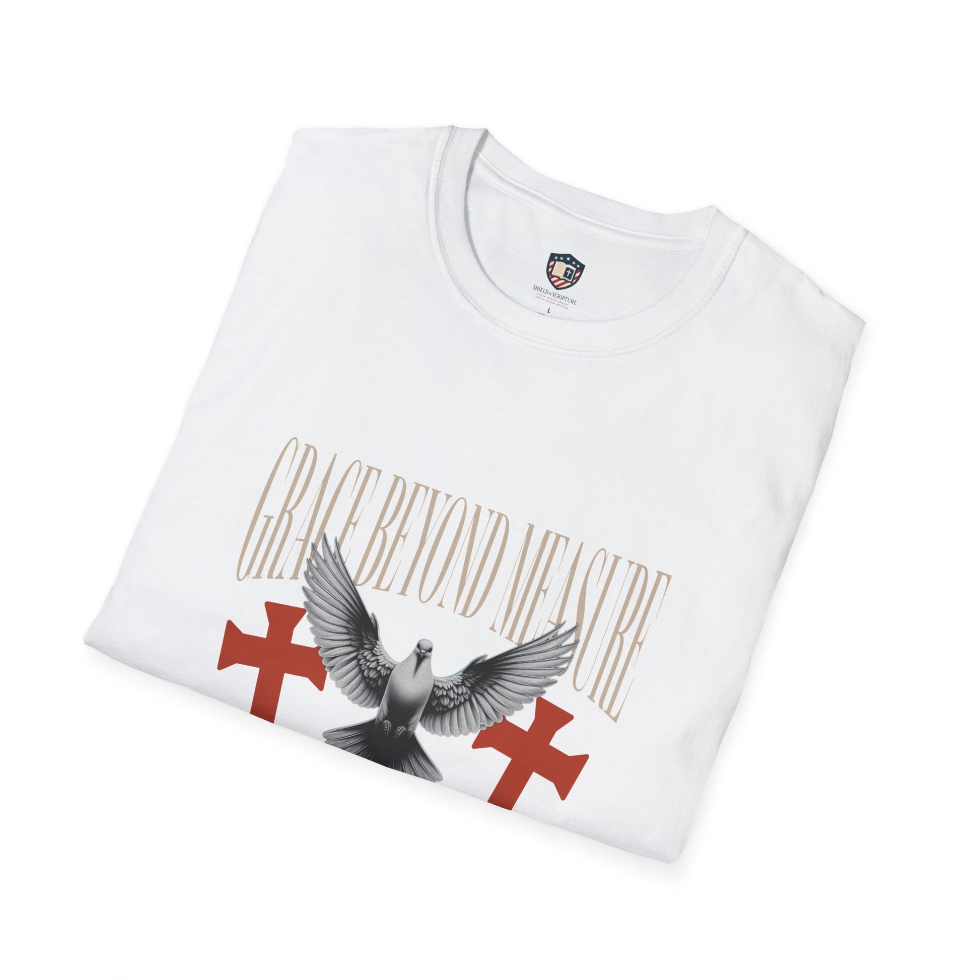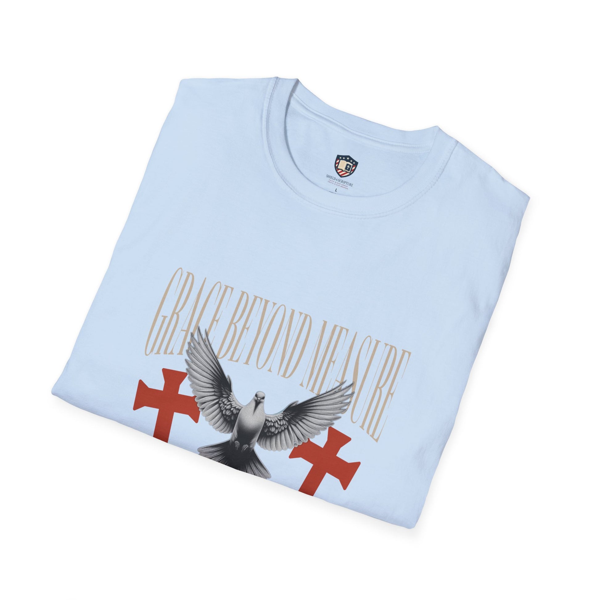 Celebrate your faith with the Grace Beyond Measure Unisex Softstyle T-Shirt , a bold expression of God’s endless love and blessings. Featuring a powerful dove and cross design alongside John 1:16, this Christian graphic tee reminds us: