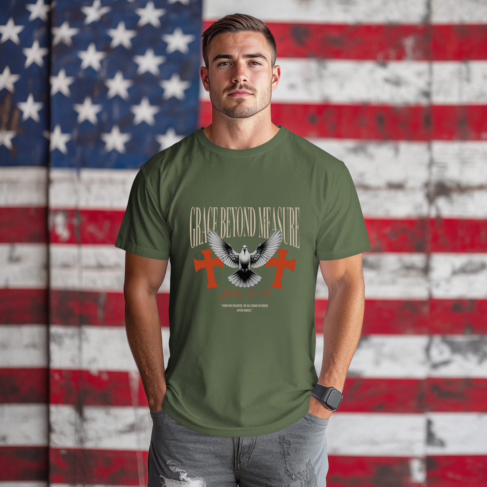 The Grace Beyond Measure T-Shirt is more than clothing , it’s a wearable reminder of God’s endless mercy and love.